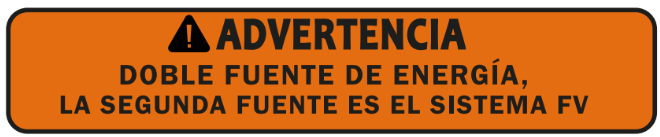 | Leyenda | ADVERTENCIA: DOBLE FUENTE DE ENERGIA, LA SEGUNDA FUENTE ES EL SISTEMA FV |